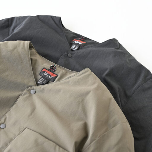 ナンガ独自の難燃素材でありながら、柔らかな着用感と耐久性を兼ね備えた、ヒノックリップストップシリーズのインナーダウンカーディガンです。
