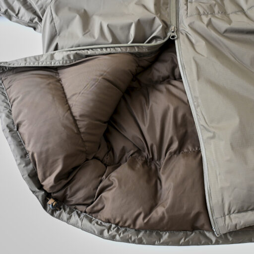 ダウンにはDX(スペイン産ダックダウン 90-10% 760FP)のダウンに超撥水加工を施した高品質・高機能ダウンであるUDD DX(スペイン産ダックダウン 90-10% 770FP)を採用。雨天時など外側からの水気や、フィールドでの作業時の汗等、内側からの湿気によりダウンが濡れて小さくなり、保温力が低下するのを最小限に抑えます。