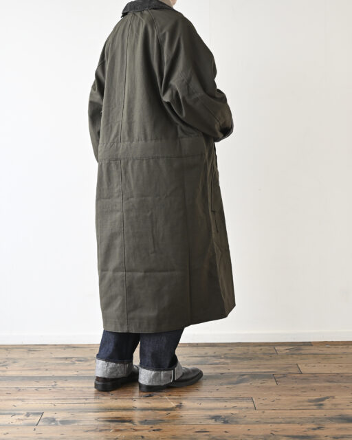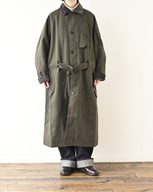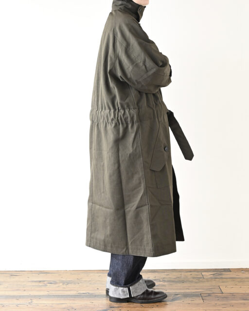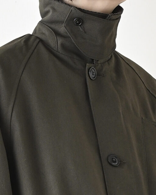 トレンチコート、コールドウェザーパーカーでは採用されていないデザインですが、この襟があることによって全体が纏まります。