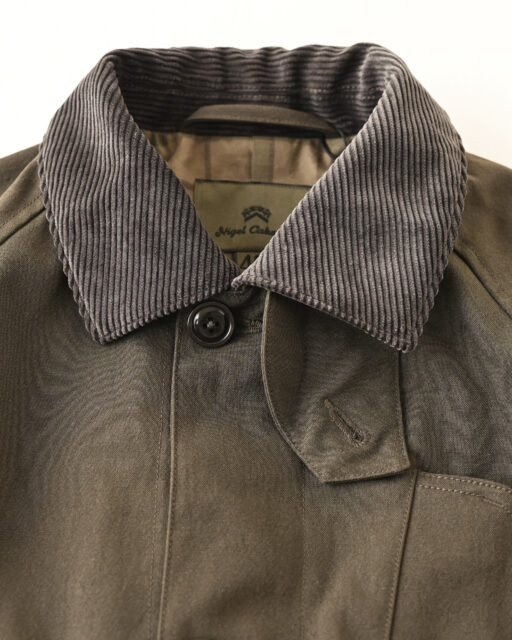 襟はハンティングジャケットに見られるような、コーデュロイ生地を配しています。