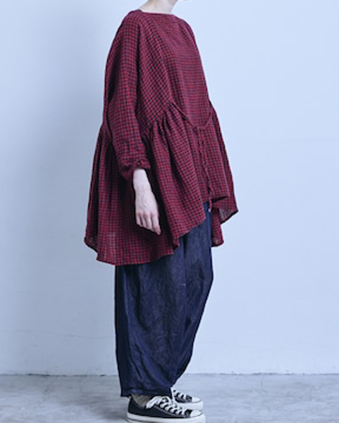 (g)グラム WOOL GAUZE CHECK GATHER RIBBON BLOUSE