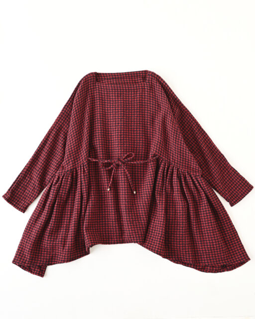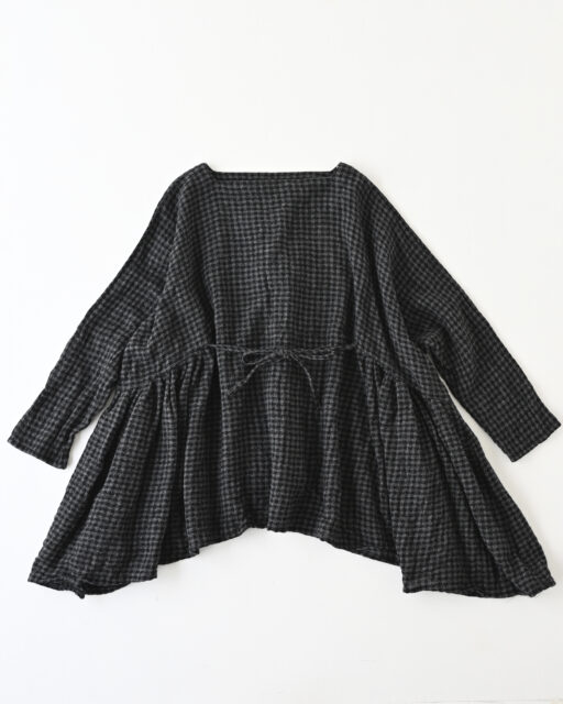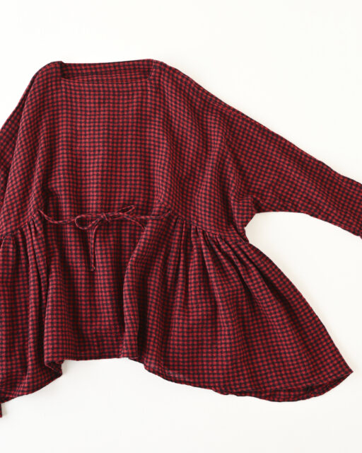 WOOL GAUZE CHECK GATHER RIBBON BLOUSE