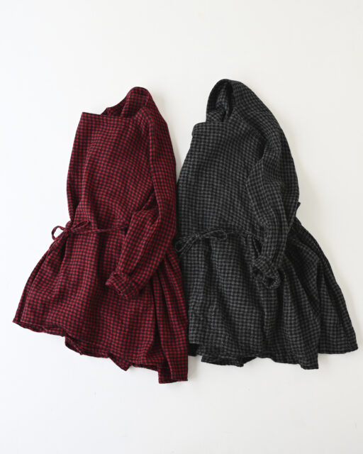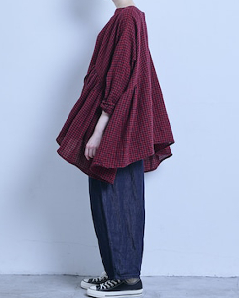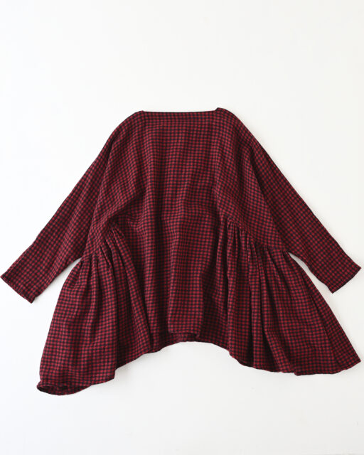 WOOL GAUZE CHECK GATHER RIBBON BLOUSEのご紹介です。