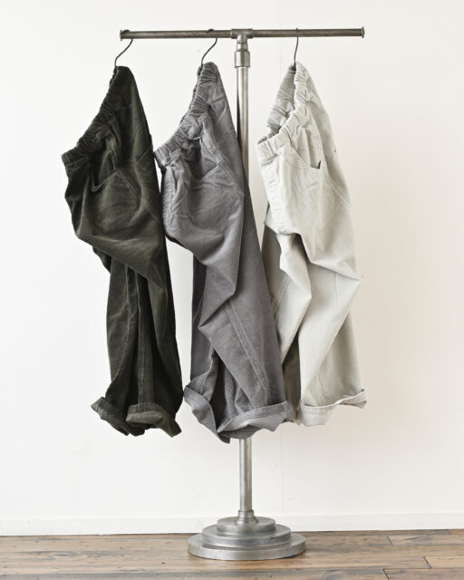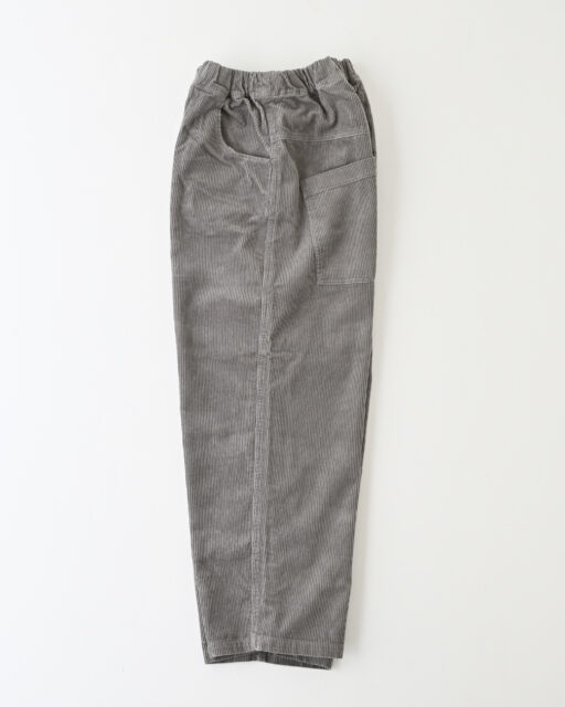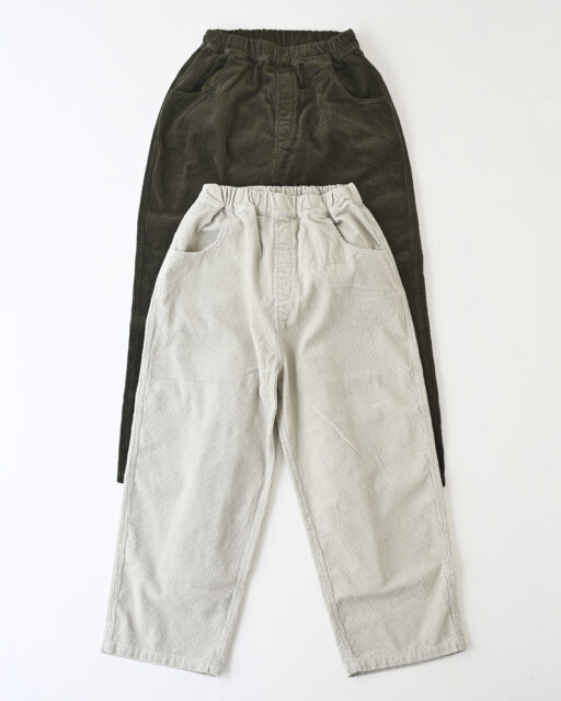 秋冬の定番、8W(ウエル)の太畝コーデュロイを使用。滑らかでしっとりとした肌触りが特徴です。コーデュロイの凹凸の起毛感が温かみのある表情を作り出しています。