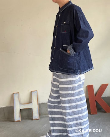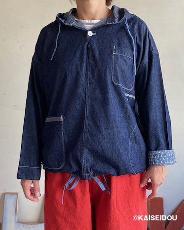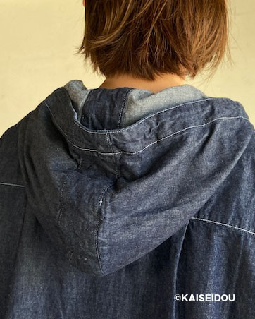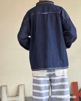 「日本綿布」による快晴堂オリジナル生地の6オンスデニムを使用した羽織デッキシャツです。