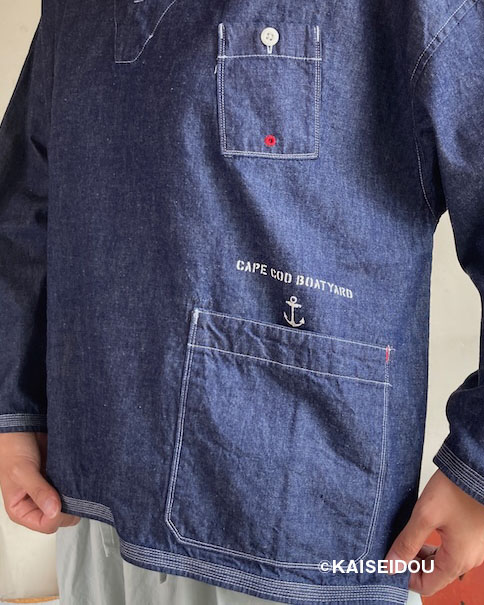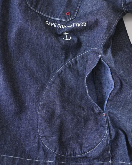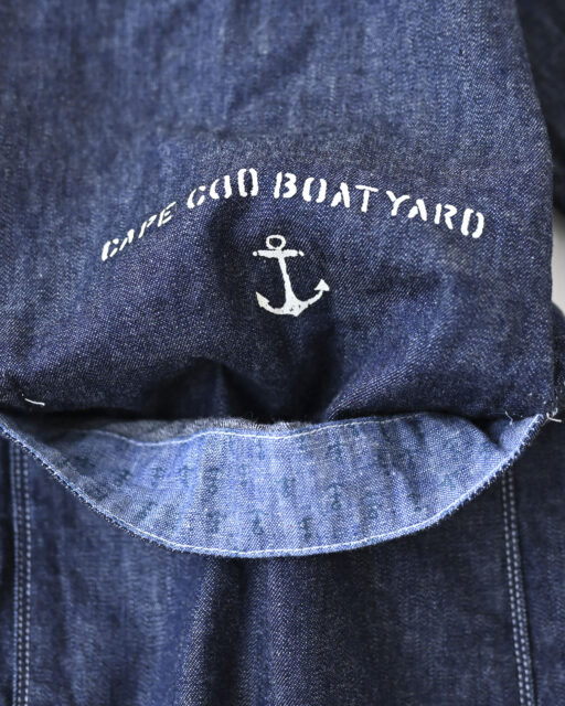 アメリカ、ニューヨーク州南東部の大西洋に浮かぶ島ロングアイランド島の突端に架空の小さな造船所『CAPE COD BOAT YARD』があります略して『CCBY』。ここのユニフォームをイメージしたデニムシャツです。