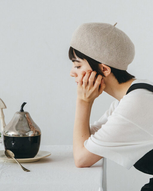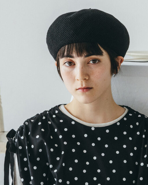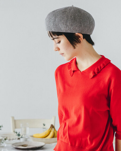 コロンとした形がかわいい細かい鹿の子編みのベレーです。