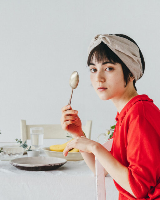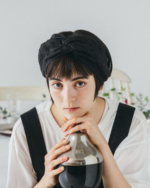 ざっくりとしたリネンガーゼ生地と薄いコットン天竺ニット生地を合わせた ターバンです。