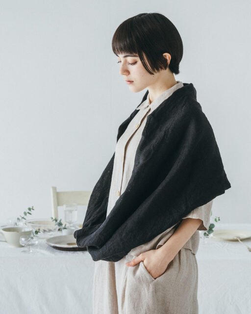 ワンウォッシュ・天日干し加工でナチュラルな風合いを際立た せました。 首元にくるくると巻いたり羽織ったりと、 気温に応じてアレンジを 楽しめます。