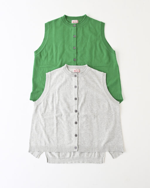 やわらかい肌触りのソフトコットンの糸を使用したホンノリAラインフロントボタンベストです♪