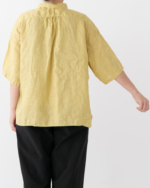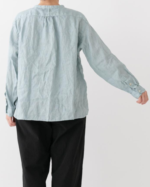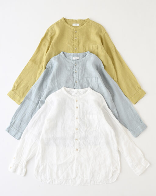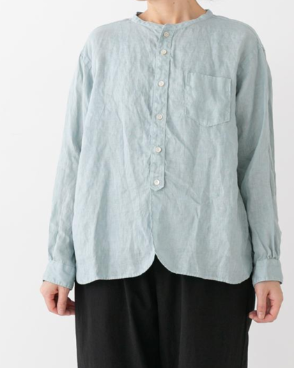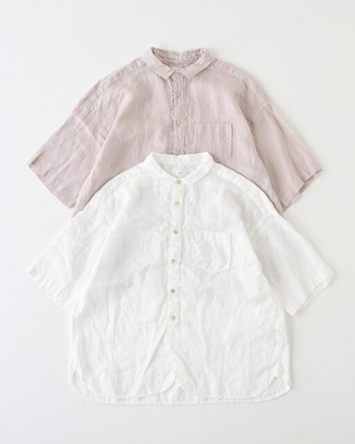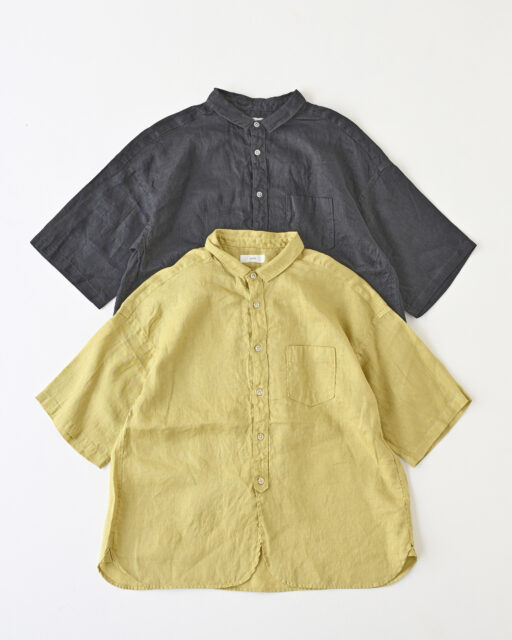 フレンチリネンバンドカラーワイドシャツ