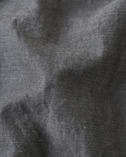 素材は番手の異なる先染めの綿糸と麻糸をタテヨコともに交互打ちしたクラシカルなヘリンボーン地。