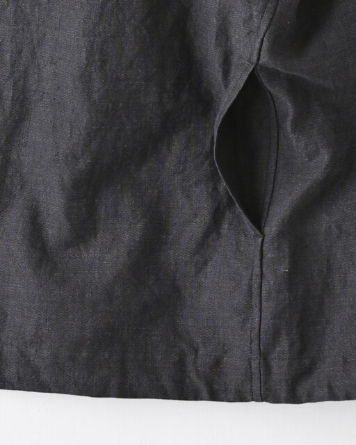 比較的薄手な素材ながらワッシャー加工を入れる事で綿、麻の縮率の差からふくらみのある表情が特徴です。